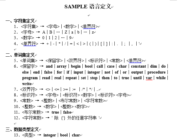 如下图为sample语言的定义