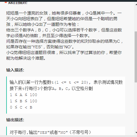 思路就是暴力,枚举A的倍数到B-1,然后每个都按照公式判断一次即可,没找对应的数学解释,因为B<100所以一般不会超时